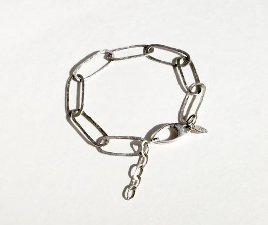Hammered Paperclip Sterling Links Bracelet
