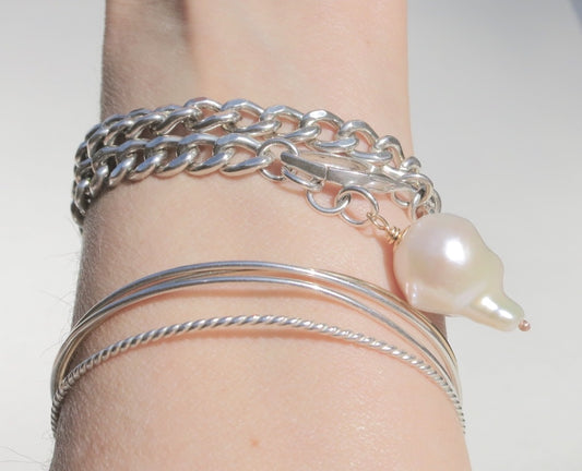 Sterling silver curb chain bracelet with pearl