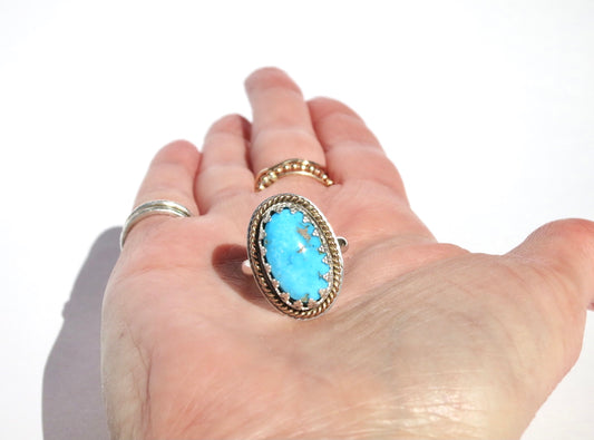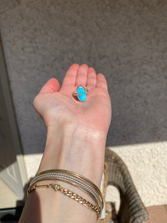 Oval Turquoise ring with mixed metal, Sterling silver and gold filled turquoise ring